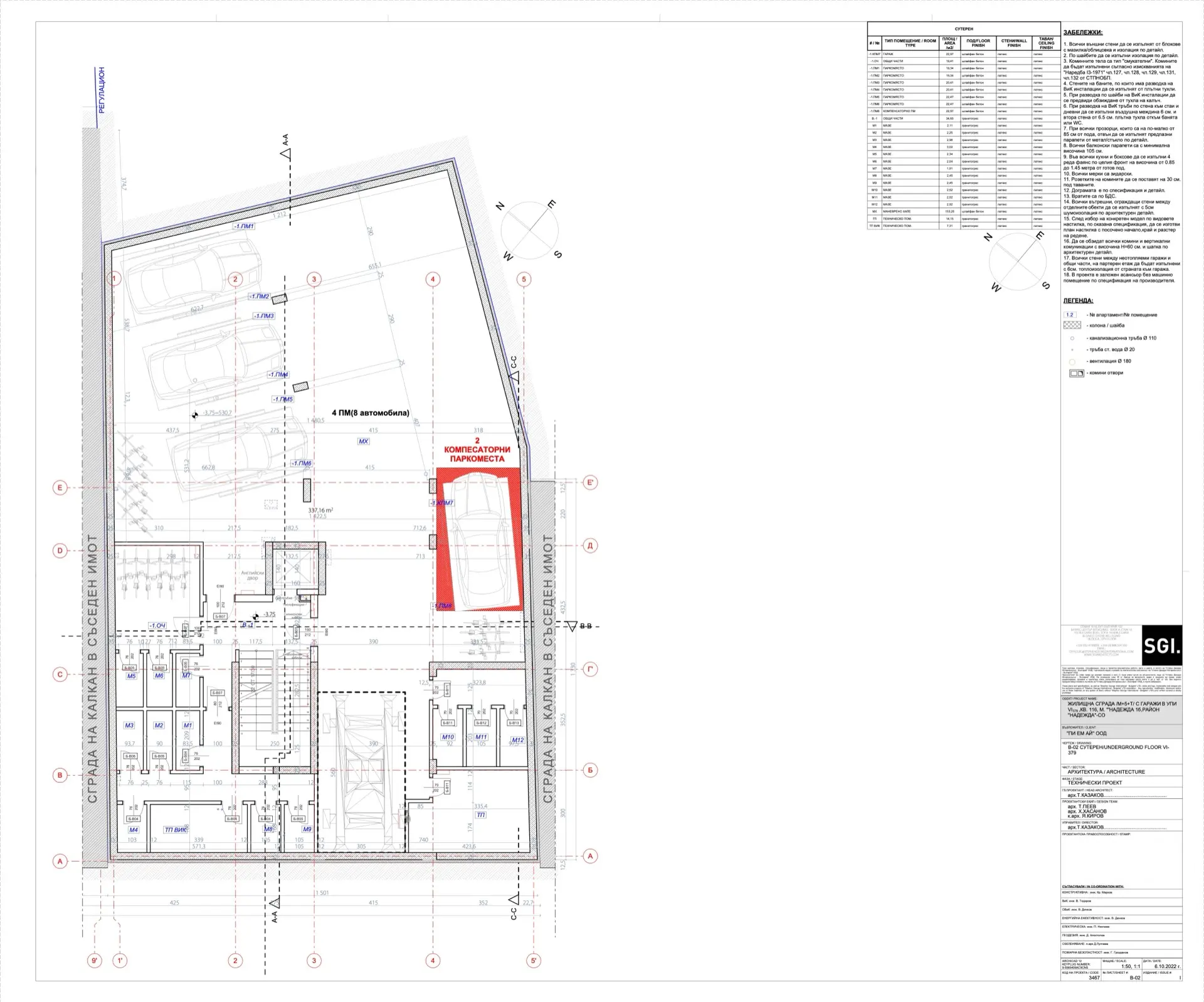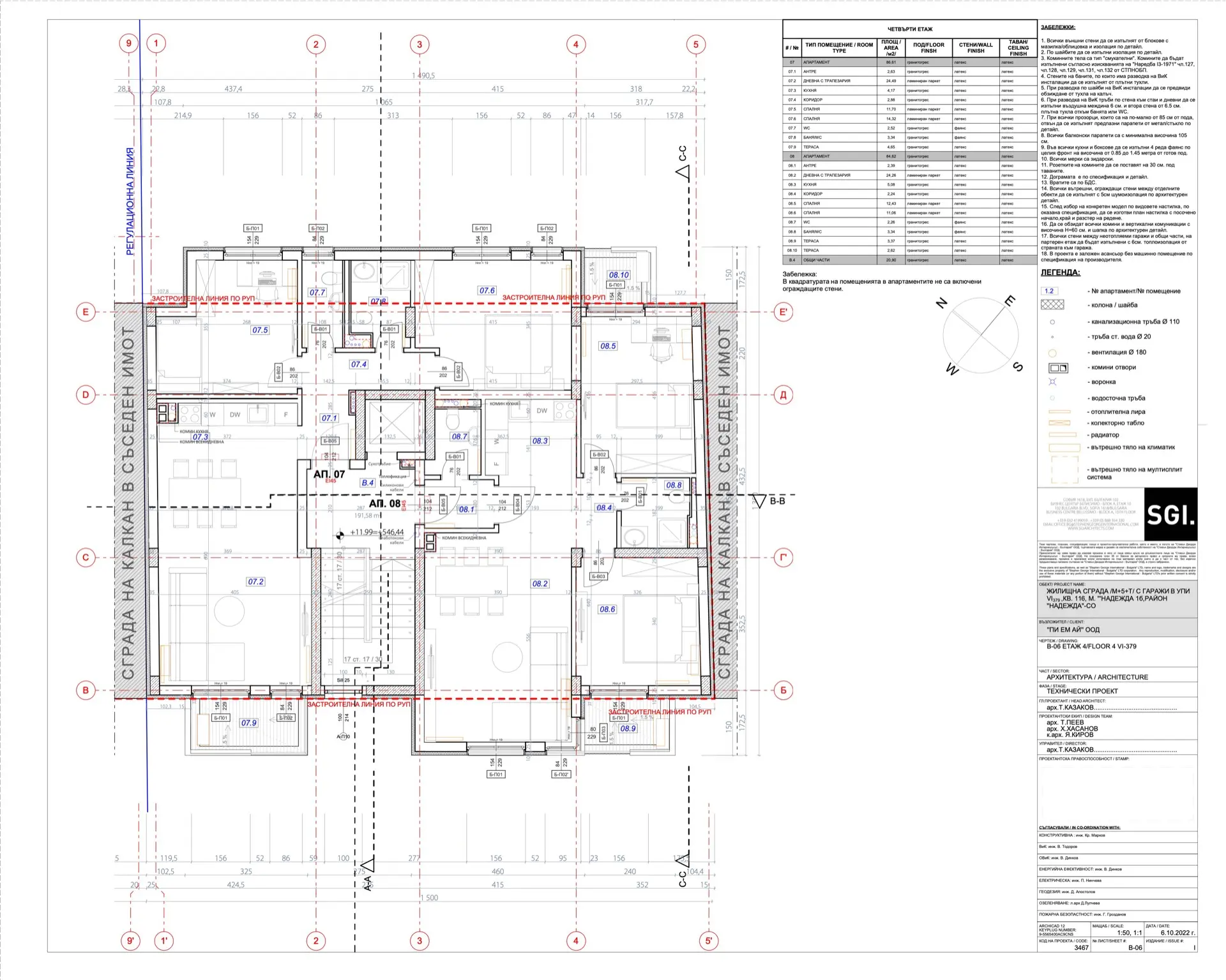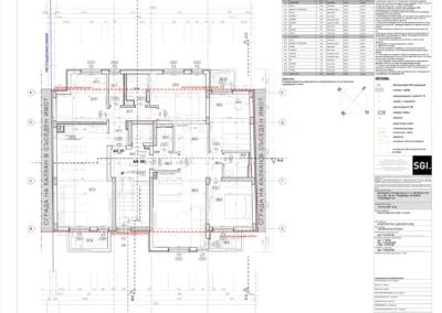В сградата са обособени 13 просторни и добре осветени апартамента с разнообразни разпределения – 2-стайни и 3-стайни жилища,за всички жилища има складови помещения разположени в подземния етаж. Осигурени са 14 паркоместа и гаражи, от които четири гаража и 10 паркоместа.